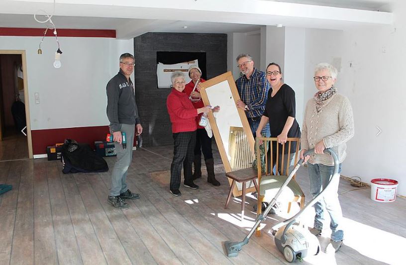 Die Stimmung ist gut: Zahlreiche Akteure des Kleinen Stadttheaters Gerolzhofen packen bei der Renovierung des neuen Domizils in der Marktstraße und beim Auszug aus dem bisherigen Depot in der Schuhstraße mit an. Im Bild (von links) Klaus Müller, Monika Freiberger, Rita Spiegel, Robert Rüth, Silvia Kirchhof und Inge Stöcklein.